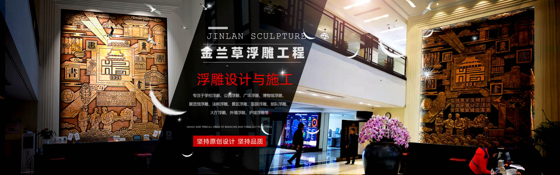 金蘭草浮雕專注于浮雕原創(chuàng)設(shè)計(jì)與定制服務(wù),精雕細(xì)琢,力求精妙絕倫,服務(wù)中高端客戶。學(xué)校浮雕、公園浮雕、廣場(chǎng)浮雕、法院浮雕、景區(qū)浮雕、軍事浮雕、醫(yī)院浮雕、博物館浮雕、展覽館浮雕、大廳浮雕、外墻浮雕、護(hù)坡浮雕。